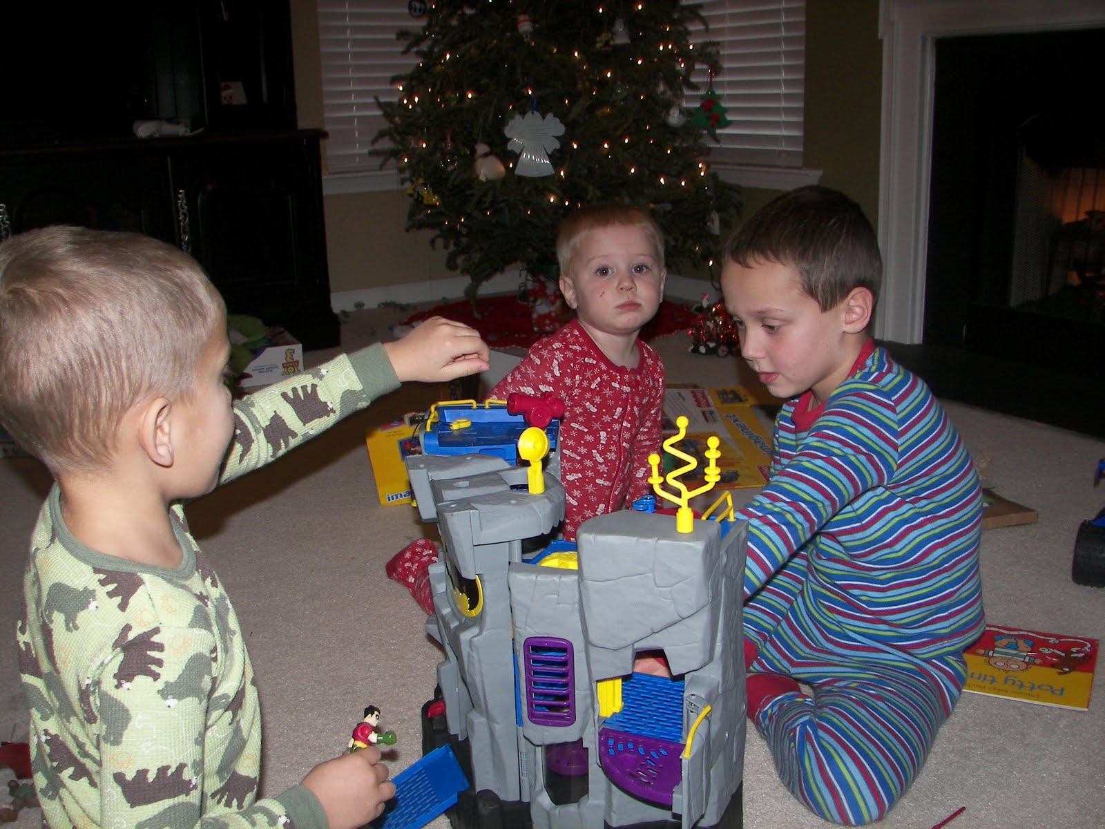 4. d3 – The littlest d-man seemed to really enjoy himself this Christmas. We had a hard time shopping for him this year – what do you get the kid whose brothers have everything? I can’t justify buying him something that we already have, especially when he would be totally content with a box of Teddy Grahams and a spatula. Needless to say, our gifts to him were minimal but others made up for it. Grandma S got him a Cozy Coupe and Grandpa D got him his own rocking horse, both of which he loved. We did buy him a few new books, my favorite being 'Everyone Poops.' I can't even say the title without giggling, which only means one of two things: a) I was destined to be on the all-boys team or b) My mind has been corrupted.